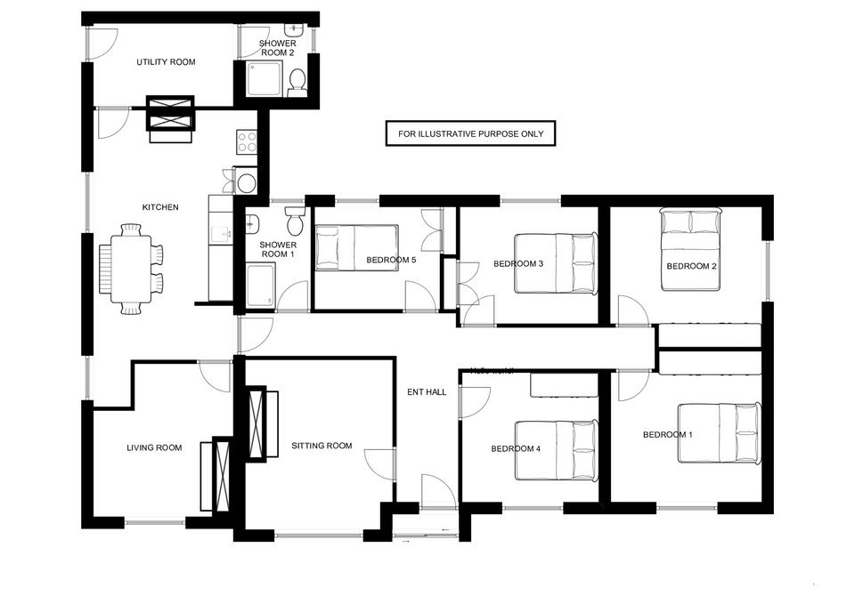 Internally, accommodation extends to c. 1,603sq.ft and includes Entrance Hall, Kitchen, Living Room, Sitting Room, 5 Bedrooms, 2 Shower Rooms & Utility Room. While in very good condition throughout, it would benefit from some upgrade works and offers incredible potential for those wishing to modernise and put their own stamp on the property.